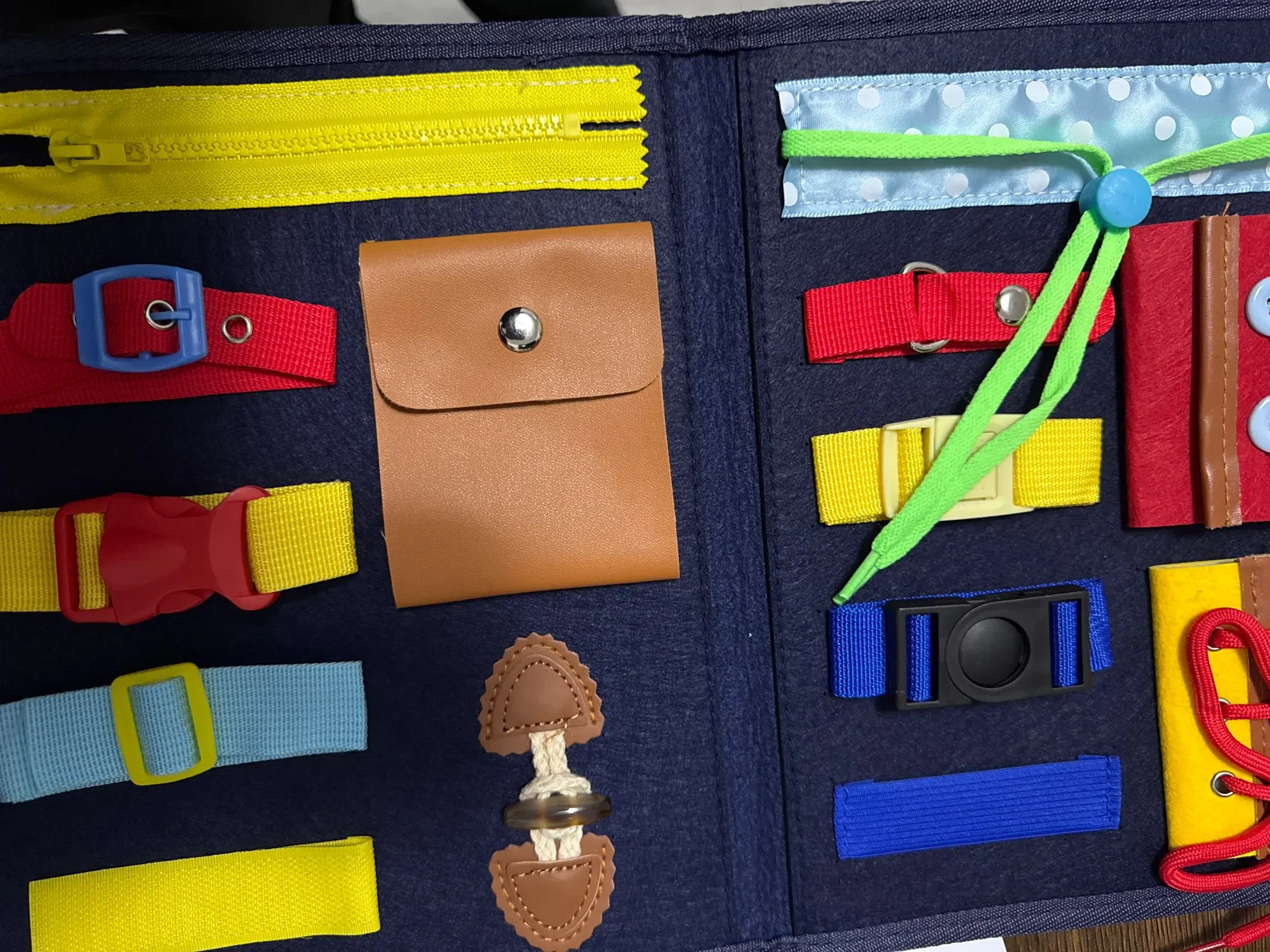 It's great for teaching how to open and close zippers, latches, and buttons.