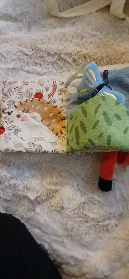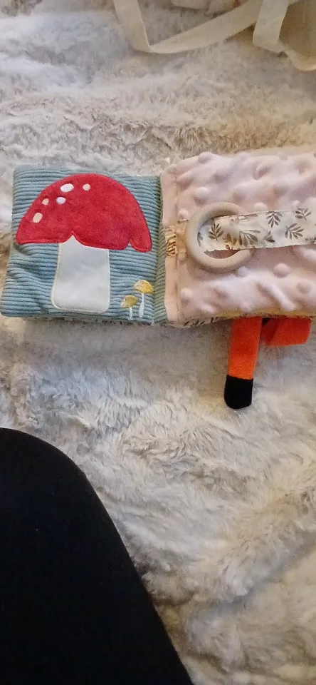 This soft Montessori cloth book invites babies to touch, look, and listen — enhancing sensory awareness and motor development through playful exploration.